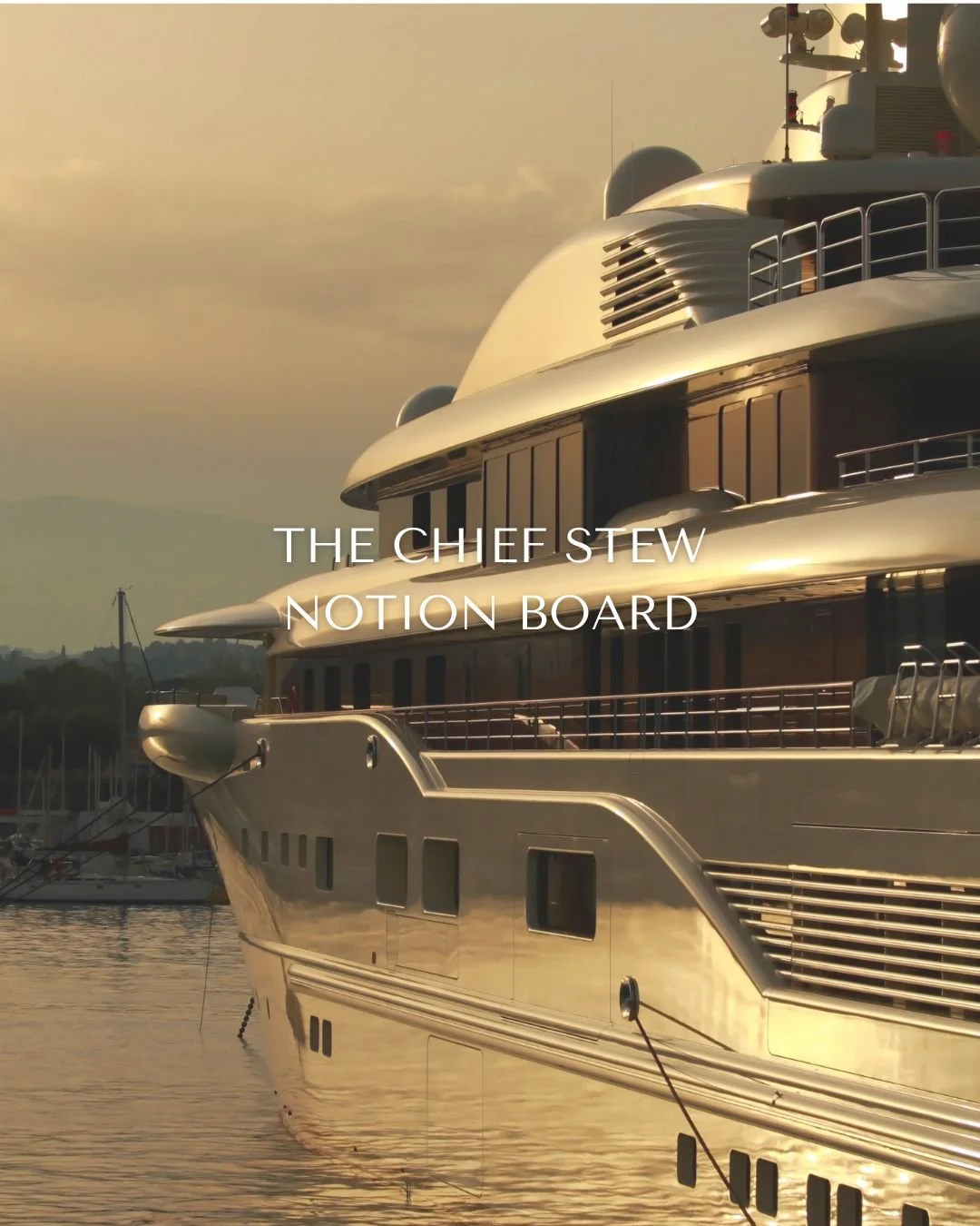 Built specifically for Chief Stews, this notion board brings together everything you need to manage your season with ease: daily task planning, full-season charter prep, on/off charter checklists, guest itineraries, preference logs, ongoing and upcoming projects.